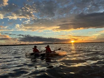 After sunset, we’ll paddle into the night and view the stars overhead and watch the Comb Jelly Bioluminescence lights up the water. We often see dolphins and manatees! There are more manatees in the Indian River Lagoon than anyplace in the world. We also use our super bright led lighting systems to illuminate the water below so you can see fish and other wildlife below.