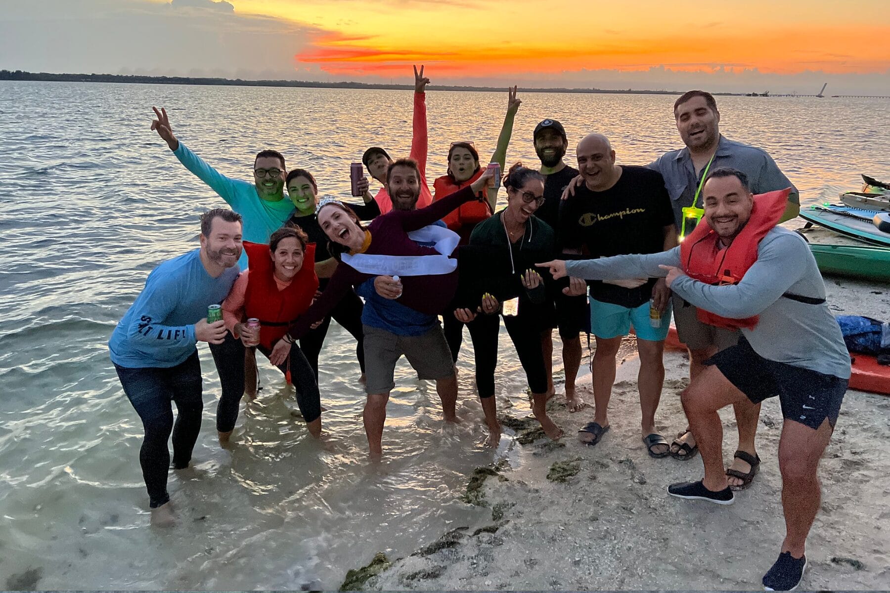 We’ll beach our vessels and explore the island while enjoying a beautiful sunset. We’ll walk out on the sandbar with small nets as we search for the comb jelly bioluminescence, horseshoe crabs, fish, stingrays, and more. Our guides will take gorgeous photos of your group to share with you after the tour ends.